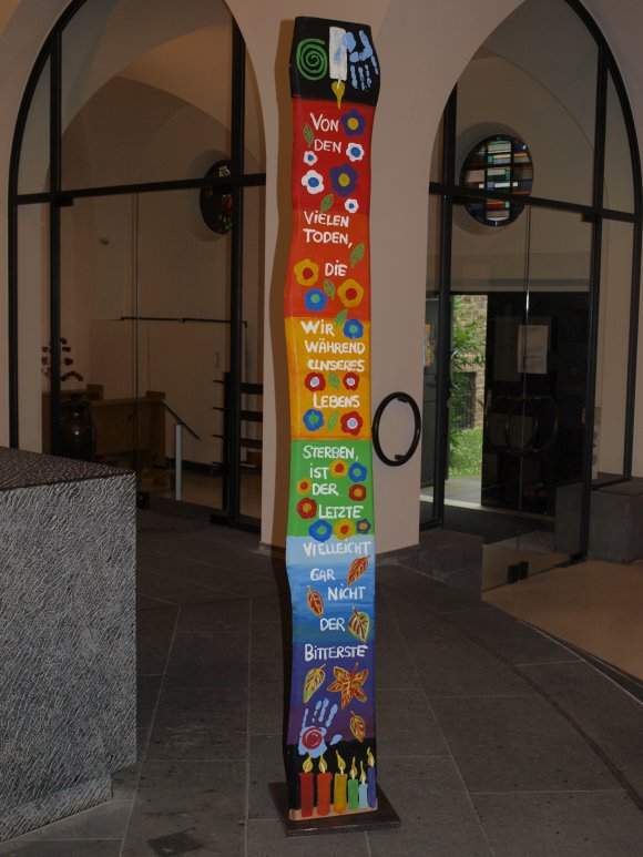 abgelaufene Angebote / Historie - Trauerpastoral, Angebote - Erläuterungen zum Kunstprojekt "Bevor ich sterbe, möchte ich..." "Bevor ich sterbe, möchte ich" Ja, was eigentlich? - Einen Marathon laufen? Im Lotto gewinnen? Meine innere Ruhe finden? Viel und laut lachen? Mit den eigenen Enkelkindern eine Sandburg bauen? "Bevor ich sterbe, möchte ich" ist ursprünglich das Projekt der amerikanischen Kü:nstlerin Candy Chang. Die Idee dazu kam ihr, als ein Mensch starb, der ihr viel bedeutet hatte. "Was ist uns eigentlich im Leben wichtig, wenn wir schon den Tod im Nacken haben?" fragte sie sich und - mit Hilfe einer riesigen schwarzen Tafel - die Menschen in ihrer Umgebung. Mittlerweile ist aus diesem persönlichen Projekt ein weltweites Projekt geworden: in vielen Städten, an ganz unterschiedlichen Orten haben diese schwarzen Tafelwände gestanden, haben zu Nachdenken, zum Aufschreiben und zum Gespräch eingeladen. Vom 27. September 2013 (Nacht der offenen Gotteshäuser) bis zum 9. Oktober 2013 lud der Satzanfang: "Bevor ich sterbe, möchte ich" in der Grabeskirche St. Elisabeth Besucher und Interessierte zum Weiterschreiben ein. Träume, Utopien, Wünsche und Hoffnungen konnten so öffentlich und doch anonym mit Kreide aufgeschrieben werden. Im Rahmen dieser Installation berichtete Frau Conny Wolff, Koordinatorin des ambulanten Hospiz und Palliativdienstes des DRK, von ihrer Arbeit mit sterbenden Menschen und ihren Erfahrungen mit deren letzten Wünschen. - Bevor ich sterbe, möchte ich... (engl.) - Bevor ich sterbe, möchte ich... (in Mönchengladbach) (engl.) - General- und Vorsorgevollmacht (27.9.2012) - Bist Du ein Engel Mit Kindern über Leben und Tod sprechen 4.10.2012 - Caritas und Eros Ein Vortrag zu Carravagios die "Sieben Werken der Barmherzigkeit", 22.11.2012 |